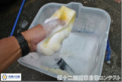 洗車中に泡が無くなって来るので、スポンジで泡を作るためです。